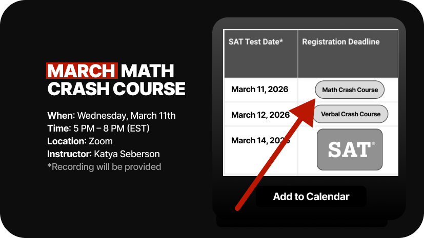 Our SAT Math Crash Course gives you the closest practice to the real test — same math question types, same difficulty, zero surprises.