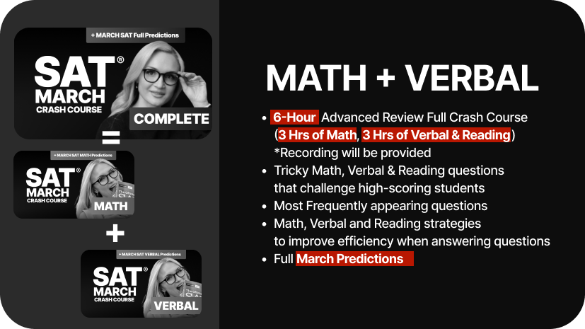 Also, you get to join a LIVE class with Katya on March 11th & 12th — your chance to ask questions and review everything before test day.
